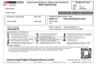 Il biglietto Machu Picchu è probabilmente uno dei biglietti più desiderati al mondo. È disponibile in 4 versioni che offrono, da una straordinaria esperienza culturale nel museo di Machu Picchu, a un'avventura vertiginosa nella montagna Huayna Picchu. Ci sono 5.000 biglietti disponibili, suddivisi in 2 turni, mattina e pomeriggio, questi possono essere prenotati fino a 2 settimane di anticipo. Tuttavia, se vuoi scalare le montagne di Machu Picchu, sappi che i biglietti sono molto limitati e hanno così tanta domanda che un biglietto per la montagna Huayna Picchu deve essere prenotato 3 mesi prima.